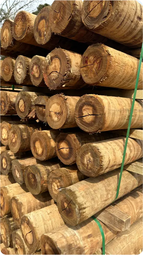 Palanques, mourões, postes, dormentes, madeiras para cercas e estruturas rurais.