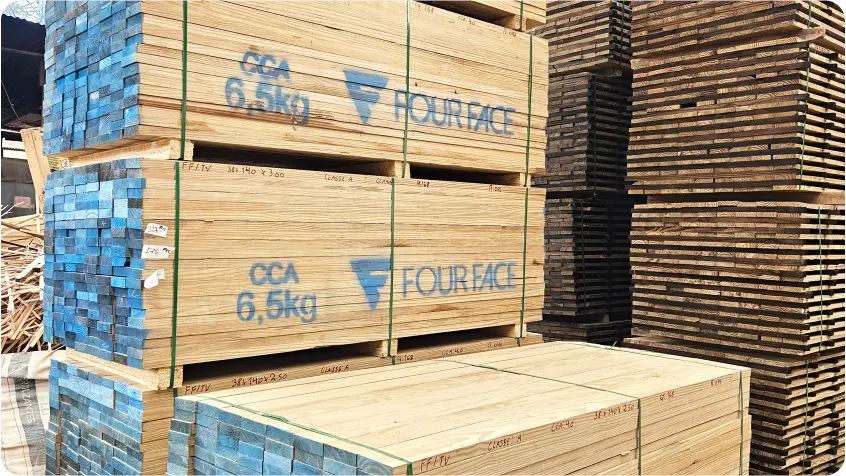 Madeira resistente, durável e preparada para suportar sol, chuva e variações climáticas. Recebe tratamento químico para evitar apodrecimento, fungos e ataque de cupins, tornando-se ideal para ambientes externos e estruturas que exigem força e longevidade.